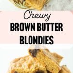 Chewy, butterscotchy bars with the deep flavor of browned butter and dark chocolate with about 1/3 less sugar than a traditional blondie recipe.
