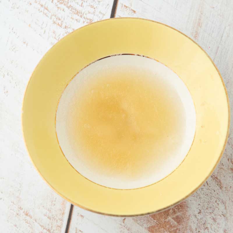 - Bloom: Sprinkle the gelatin on top of the water. Let it sit and soften while you prep everything else. This is called “blooming” the gelatin.