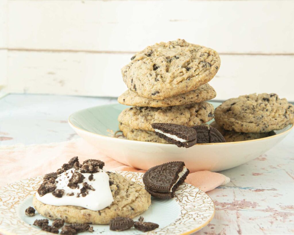 You’ll love these cookies and cream cookies; they’re big soft sugar cookies loaded with Oreos and topped with a fluffy marshmallow cream frosting.