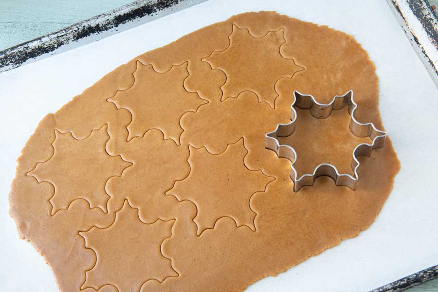 - Parchment: As with all my cut-out cookies, I always roll between parchment for ease of use. The parchment is key here as you will slide the whole sheet directly onto a baking sheet once you’ve cut your shapes and peeled away excess dough.