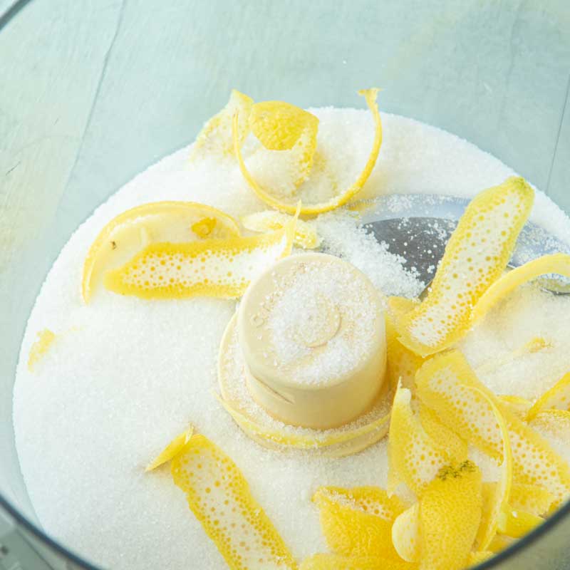 1. Use the food processor: Yes, you can grate the zest finely from a microplane and then stirring the zest into sugar. I don’t do this because the agitation you get in a food processor will give you more taste. This is because the food processor also grinds up the lemon zest so that every single grain of sugar is coated with the lemon’s essential oils.