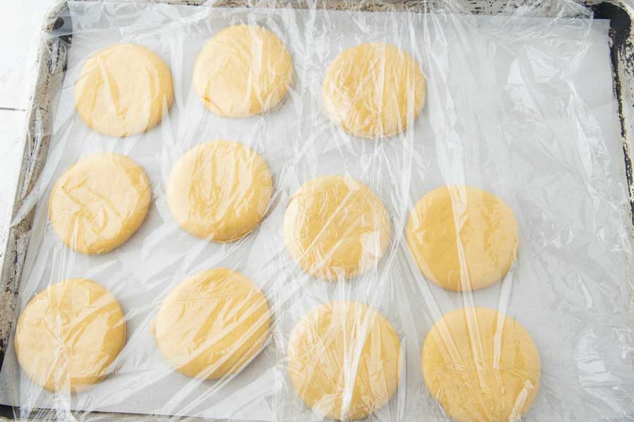 - Place the dough rounds on a parchment lined sheet pan. Cover with plastic wrap. Allow to sit for a full 30 minutes. This is a critical step because if they sit for less time, they will not have enough air in them to inflate while they fry.