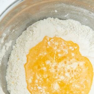 - Mix the flour with the lemon zest, and baking powder, and salt (if using) in a large bowl.