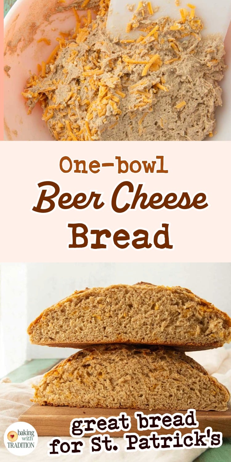 This no-knead beer cheese bread is so rich and savory with the complex flavors of beer, cheddar, honey, whole wheat and tender buttermilk in an easy to make country loaf you can make in one bowl.