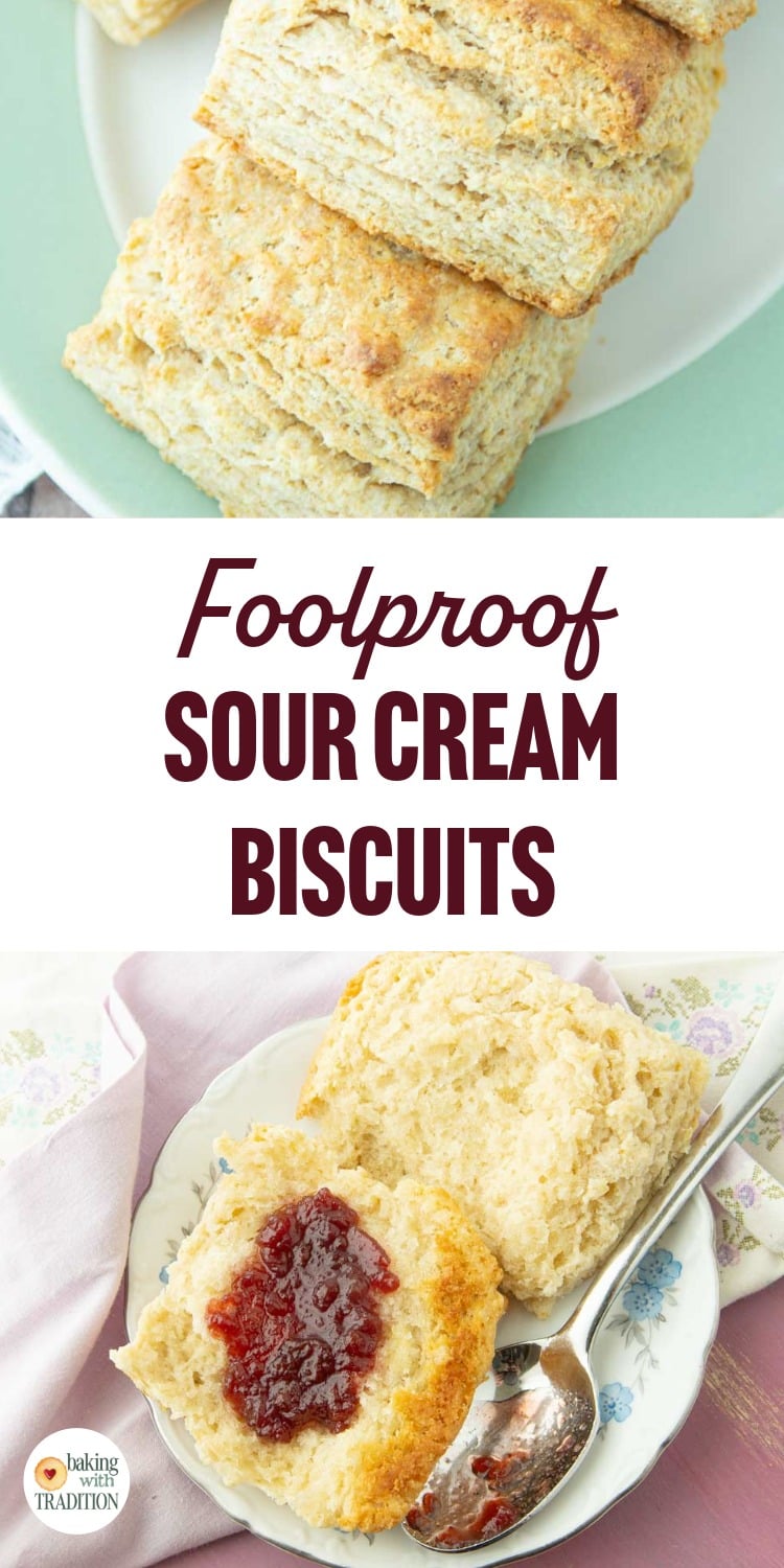 The best sour cream biscuits are sky high with buttery layers and a tender crumb that comes from sour cream.